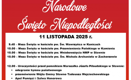 Zapraszamy serdecznie na uroczyste obchody Święta Niepodległości 11 listopada przy pomniku Marszałka Józefa Piłsudskiego w Sławnie.